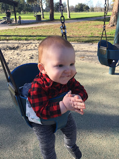 They come in six different colors with several gender neutral options and roll up compact enough to easily slide into your diaper bag. When ours arrived we immediately went back to the park and gave the swing a second chance. With our new Swing Thing in hand, I got Luke secured in place I eagerly pushed the swing…. This time his face lit up with a huge smile and laughter overflowed from his belly as he soared! My heart left and I quickly found myself laughing along side him. Swing Thing is everything I hoped and more!